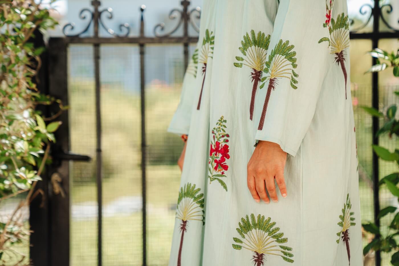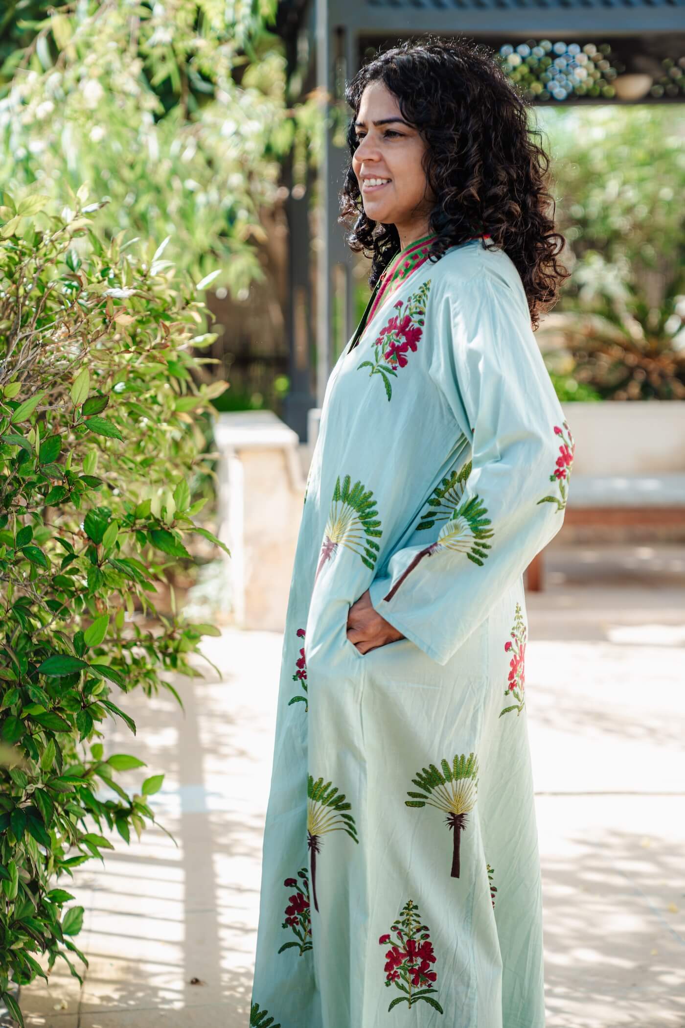 The perfect dress to lounge/chill in! Free size in mulmul, gorgeous color and print. Feels like second skin!
