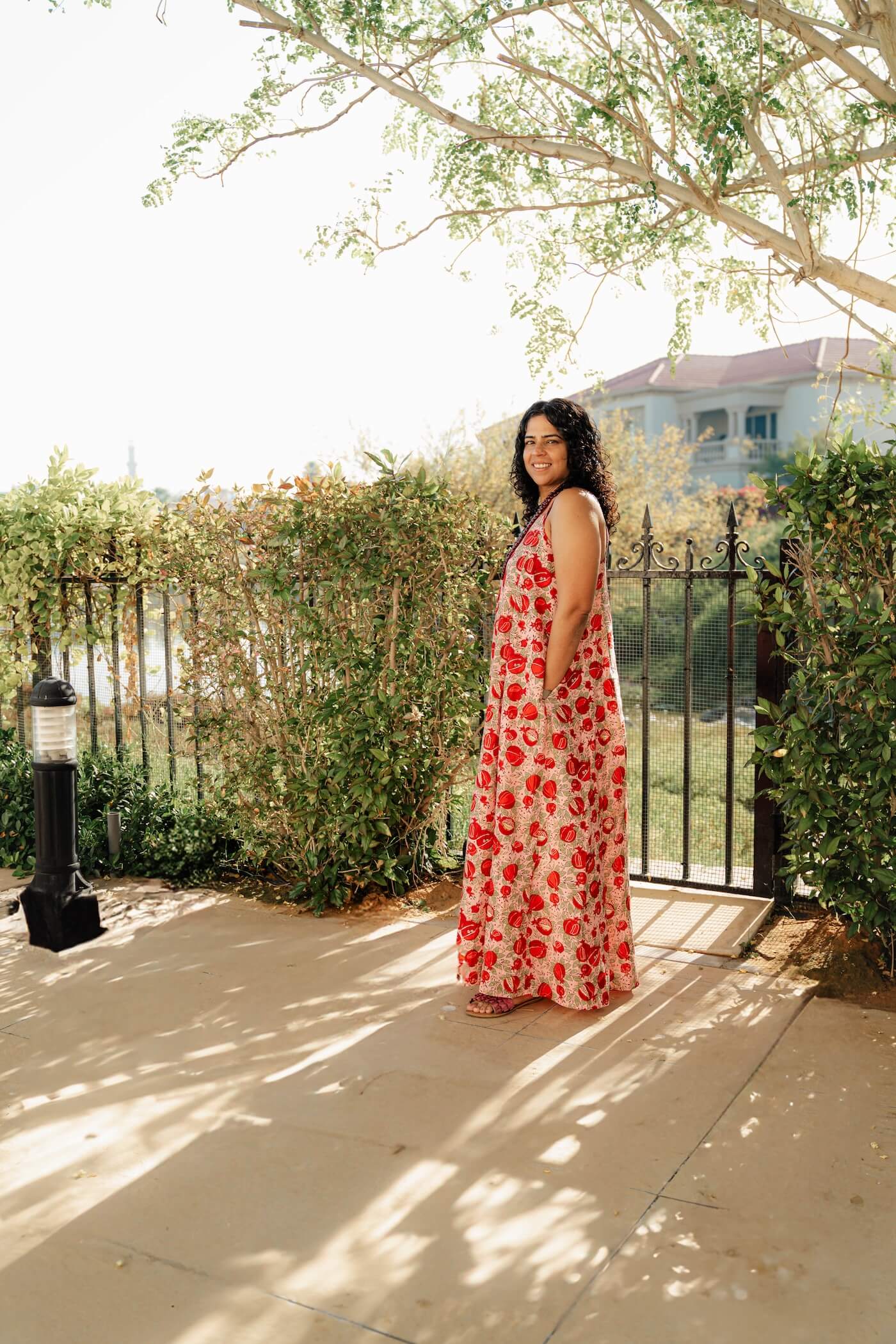 A Vibrant and colourful dress is certainly one of our favourites. Its handcrafted in the most comfortable cotton and features adjstable straps. The silouette is breezy and flowy.You can style it with accesories or wear it casually. Its perfect for summers and spring and of course we didnt forget pockets!